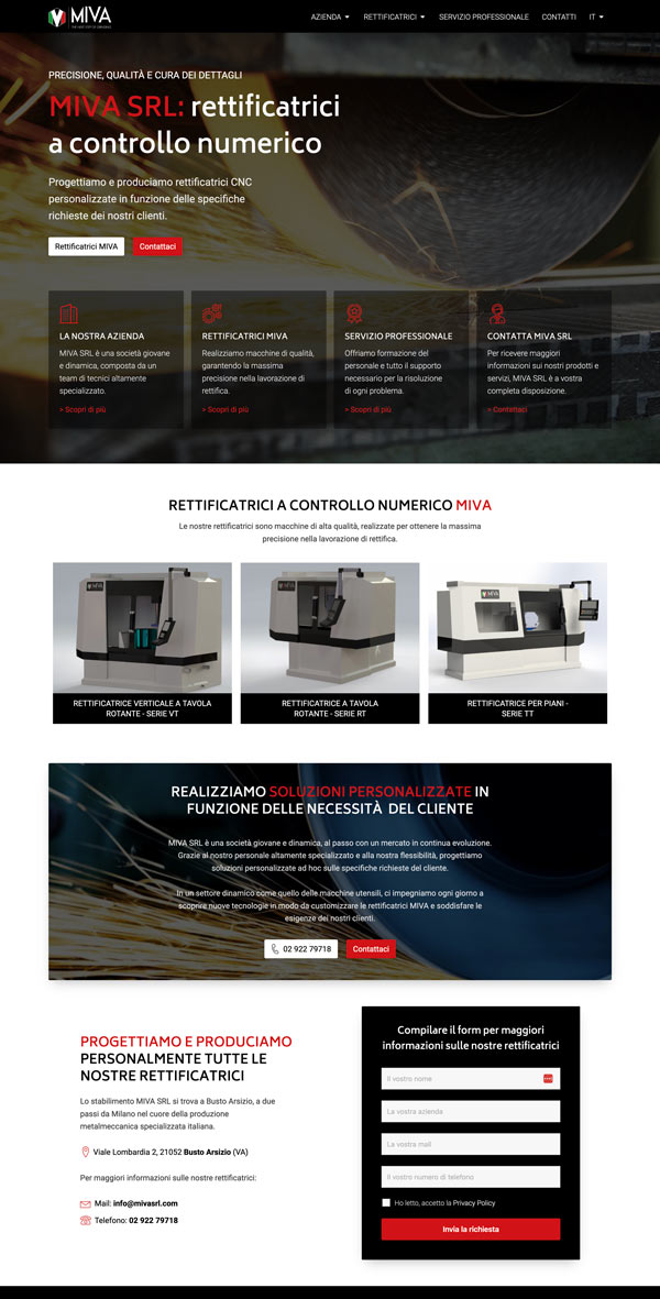 Miva Srl ci ha commissionato la realizzazionne di un sito web con l'obiettivo di rappresentare in modo professionale la propria azienda e la qualità dei prodotti offerti.