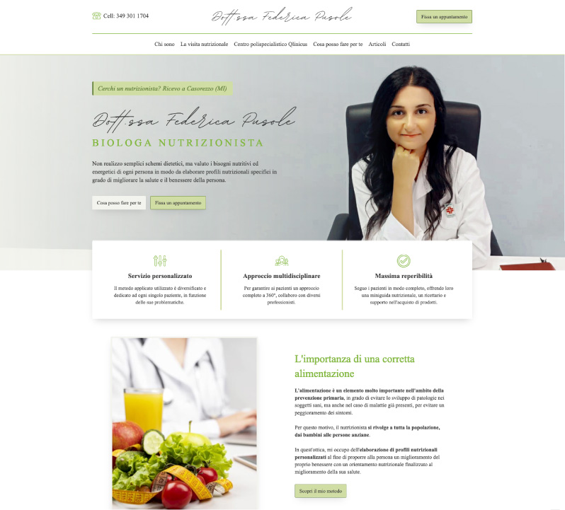 Un sito web per un nutrizionista rappresenta uno strumento fondamentale per instaurare un rapporto di fiducia con i potenziali clienti. Per questo motivo è importante curare ogni dettaglio, dalla scelta dei colori alla chiarezza delle informazioni che vengono trasmesse.